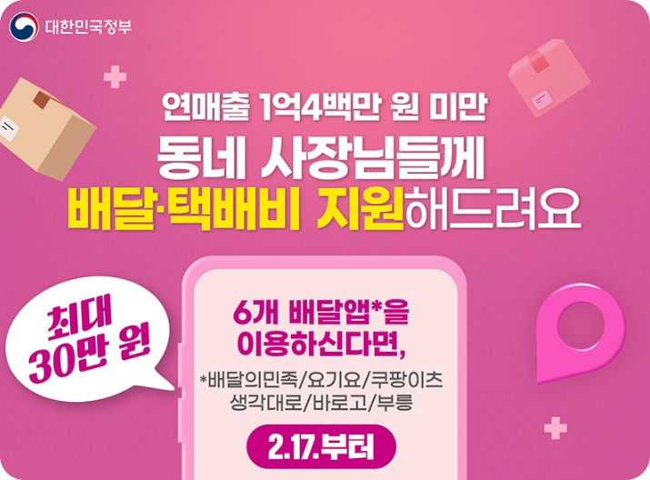 1.✅ 배달 택배비 30만 원 지원금 대상 확대