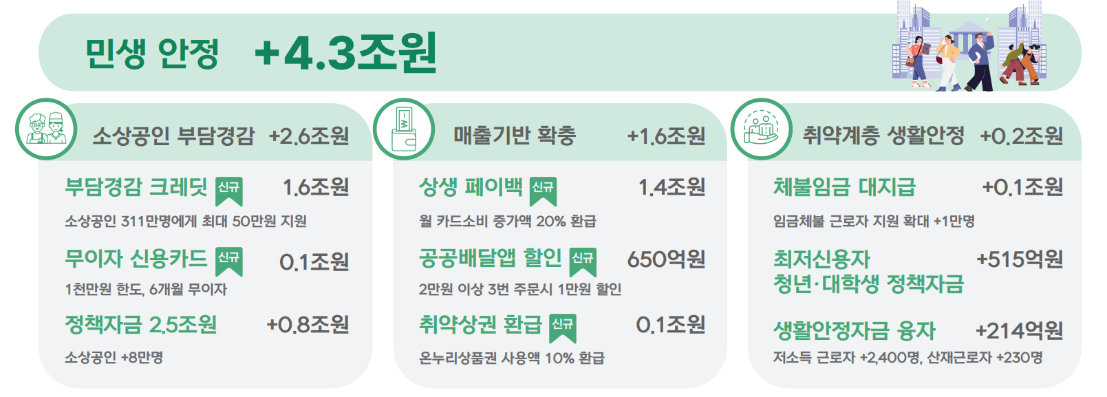 👉 소비를 늘려 소상공인 매출 회복을 유도하는 정책들입니다.