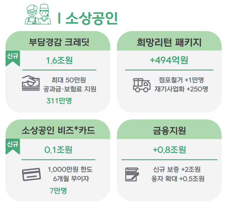 👉 소비를 늘려 소상공인 매출 회복을 유도하는 정책들입니다.